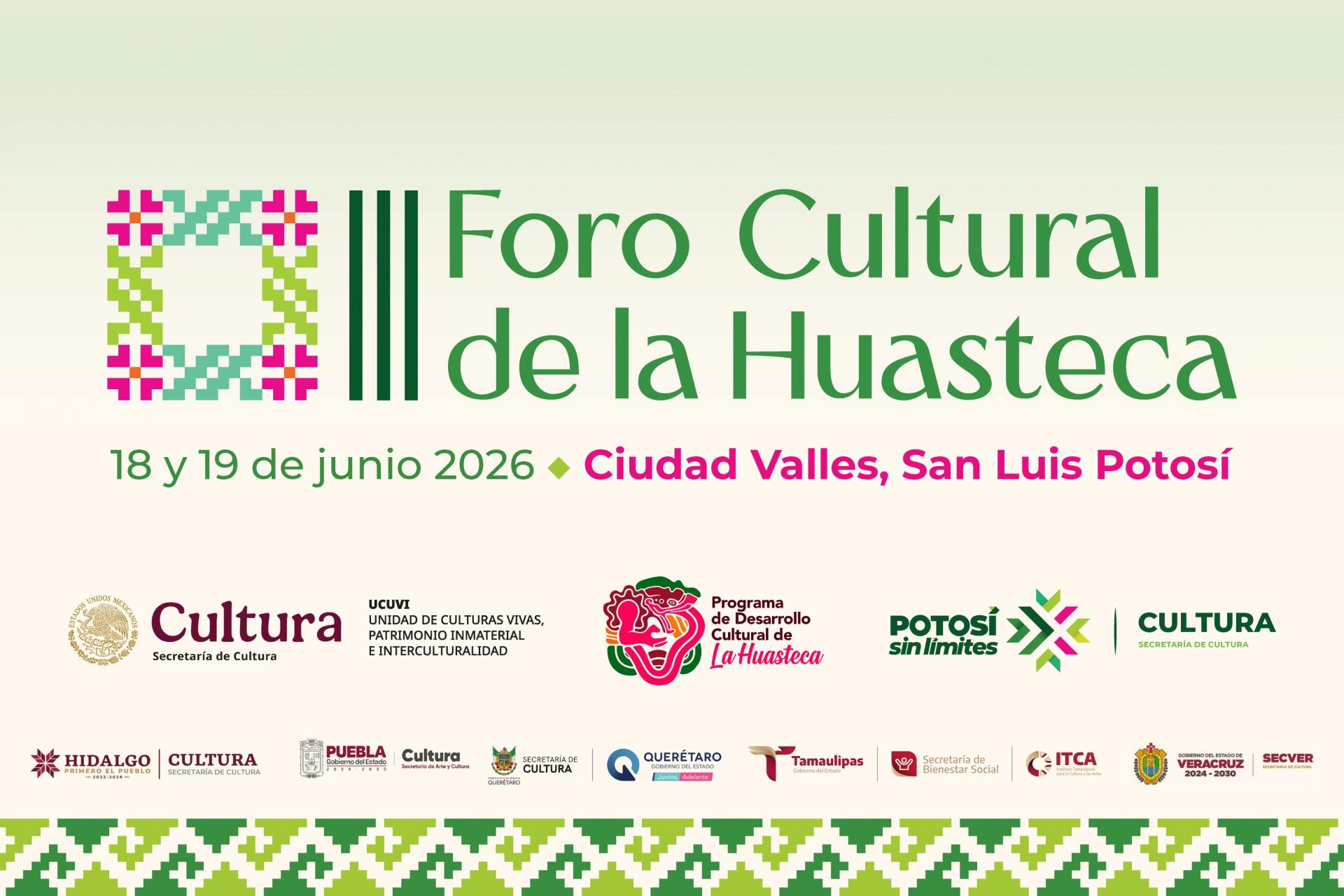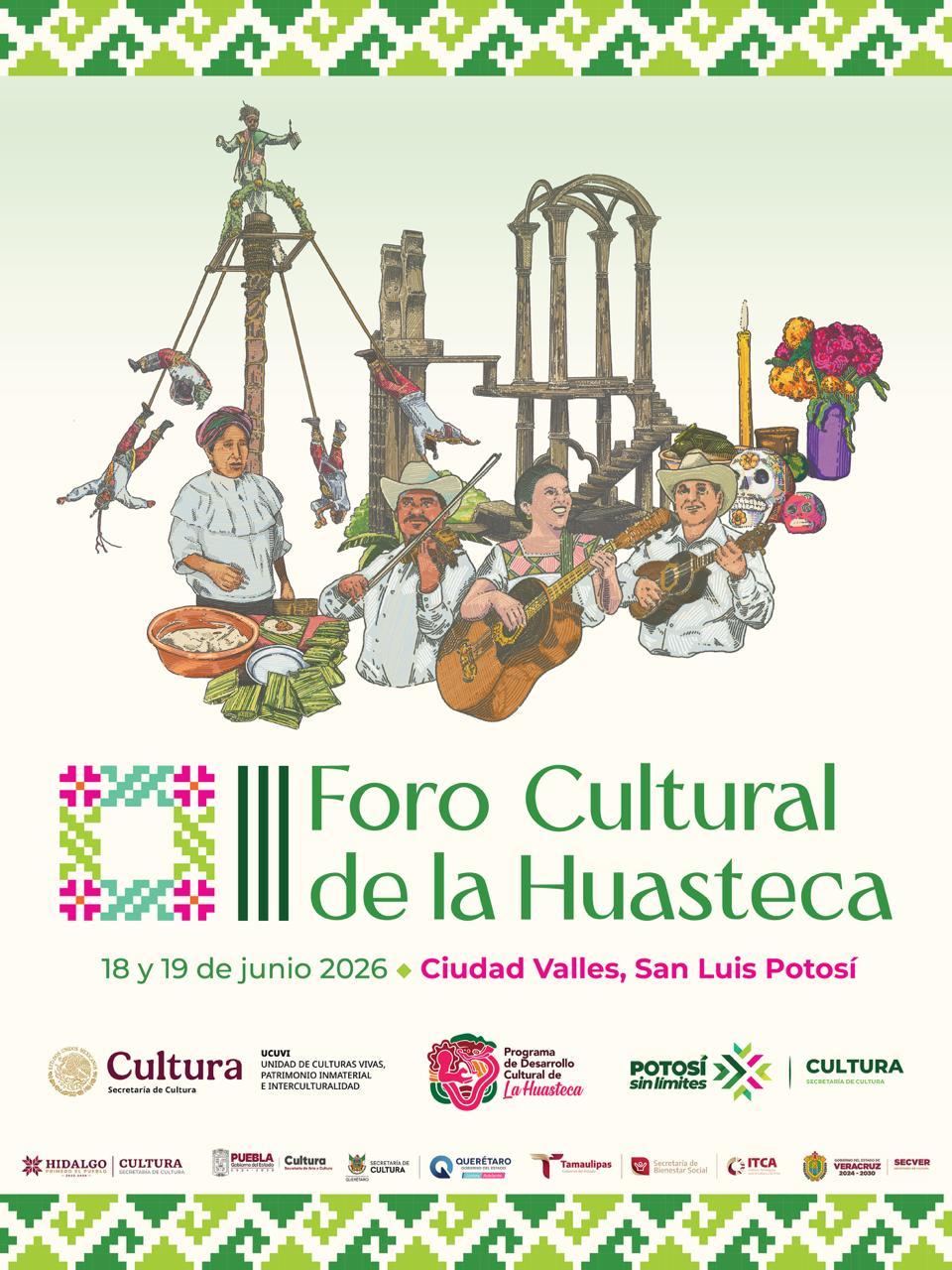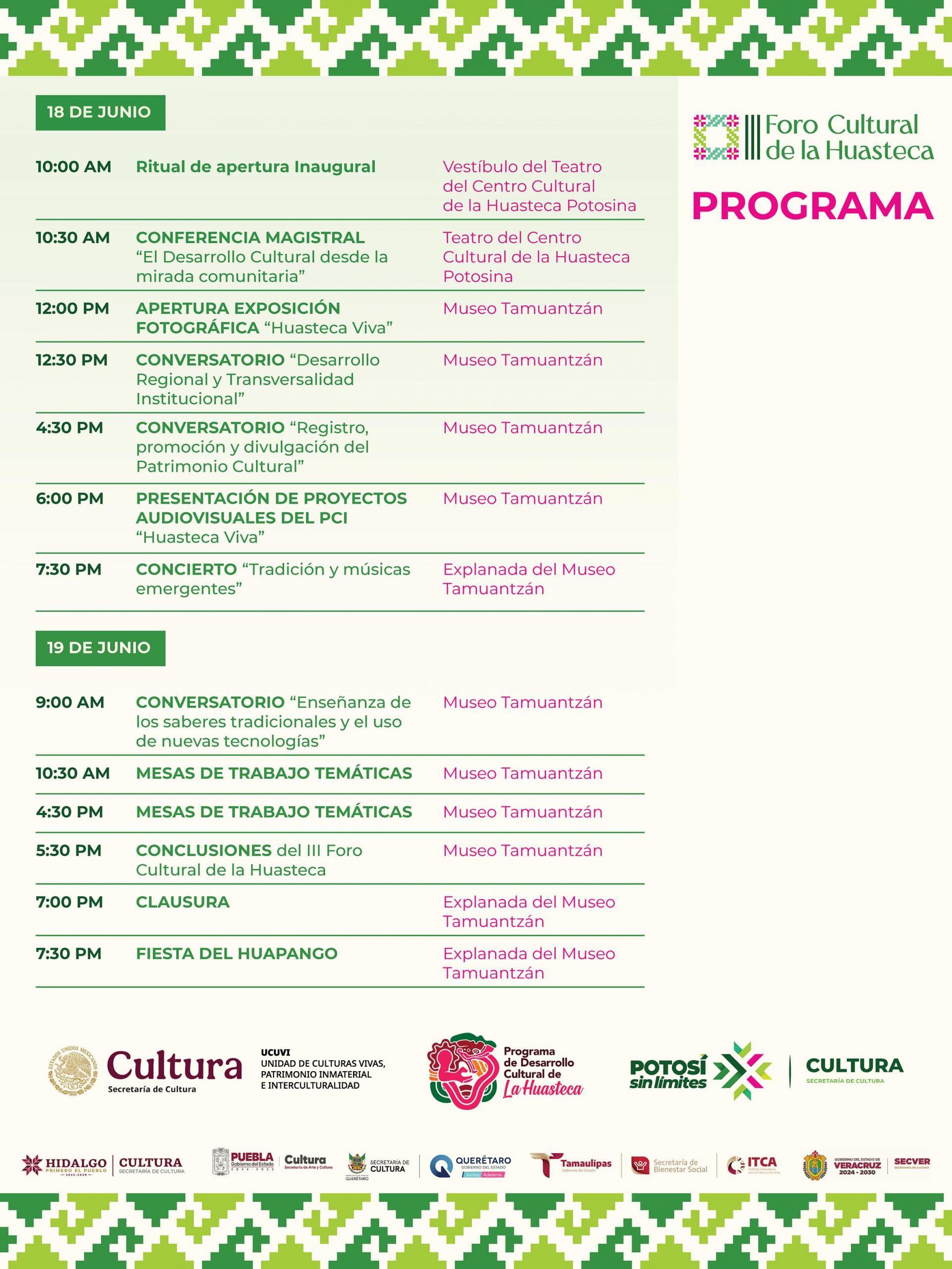 ¡Se acerca el Foro Cultural de la Huasteca! Te compartimos la cartelera completa para este 18 y 19 de junio. Dos días dedicados a la reflexión, el arte y la tradición de nuestra región. ¡No faltes! Sedes principales: Centro Cultural de la Huasteca Potosina y Museo Tamuantzán.